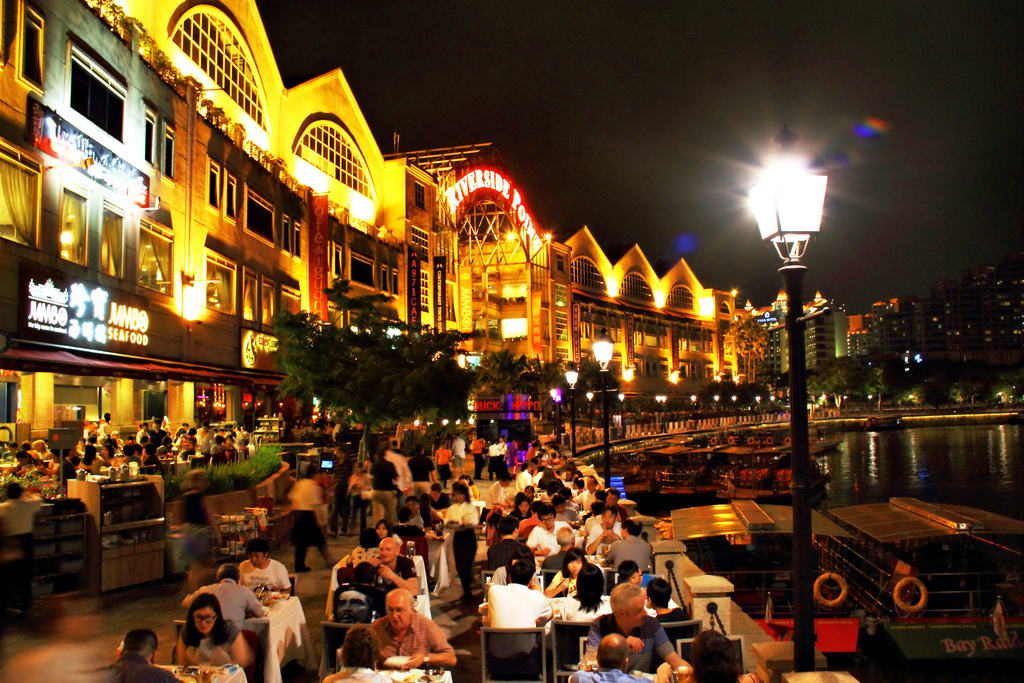 Take a river cruise on a restored bumboat and explore the other famous attractions—such as Boat Quay and Clarke Quay—along the Singapore River.