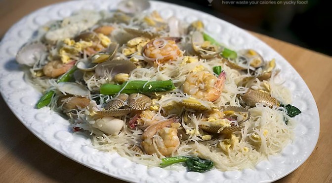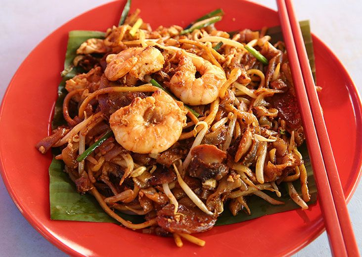 Literally “stir-fried rice cake strips”, is basically flat rice noodles stir-fried with shrimp, bloody cockles, Chinese lap cheong (sausage), eggs, bean sprouts, and chives in a mix of soy sauce.