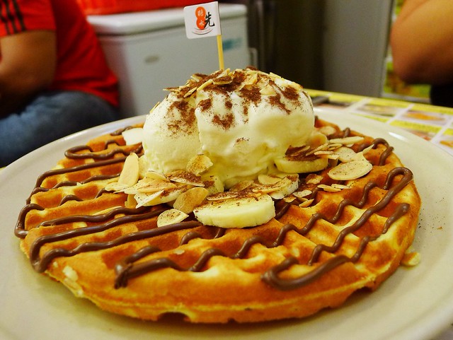 Waffle with Nutella and Bananas with Vanilla Ice-cream