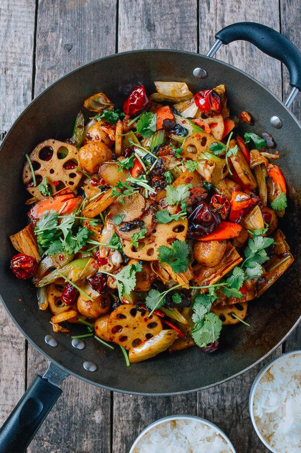 Dry pot (Gan Guo or Mala Xiang Guo) takes the flavorings and ingredients of Mala Sichuan hot pot and is cooked with your selected meats and veggies. You begin by choosing which meat, fish or veggies for your mala and they will cook it for you. You can choose whether to eat with rice or include noodles in the Mala. The spiciness ranges from less spicy, medium spicy and spicy.