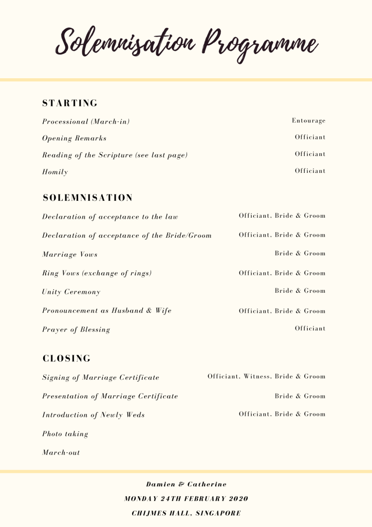 Solemnisation Programme Download PDF “She warned him not to be deceived by appearances, for beauty is found within.” #onceuPANaTAN Back to Wedding Programme Back to Home Page Share this: Share on X (Opens in new window) X Share on Facebook (Opens in new window) Facebook Like Loading...